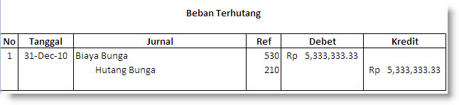 Dan Rp. 5.333.333 juta inilah yang akan kita masuk-kan ke dalam account Biaya Bunga dengan nomor account 530 (account dan nomornya dapat dilihat pada artikel Bagian 1).