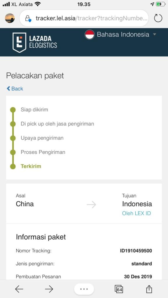 Untuk melacak paket Lazada, silakan masuk ke website: tracker.lel.asia